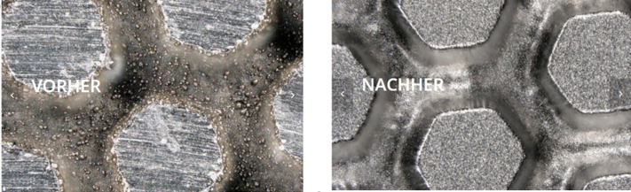 清洁时间约为15秒。清洗后表面无损伤,基材清晰可见。可以通过喷射细小的塑料颗粒,干净的去除沉积物,而不会损坏模具。